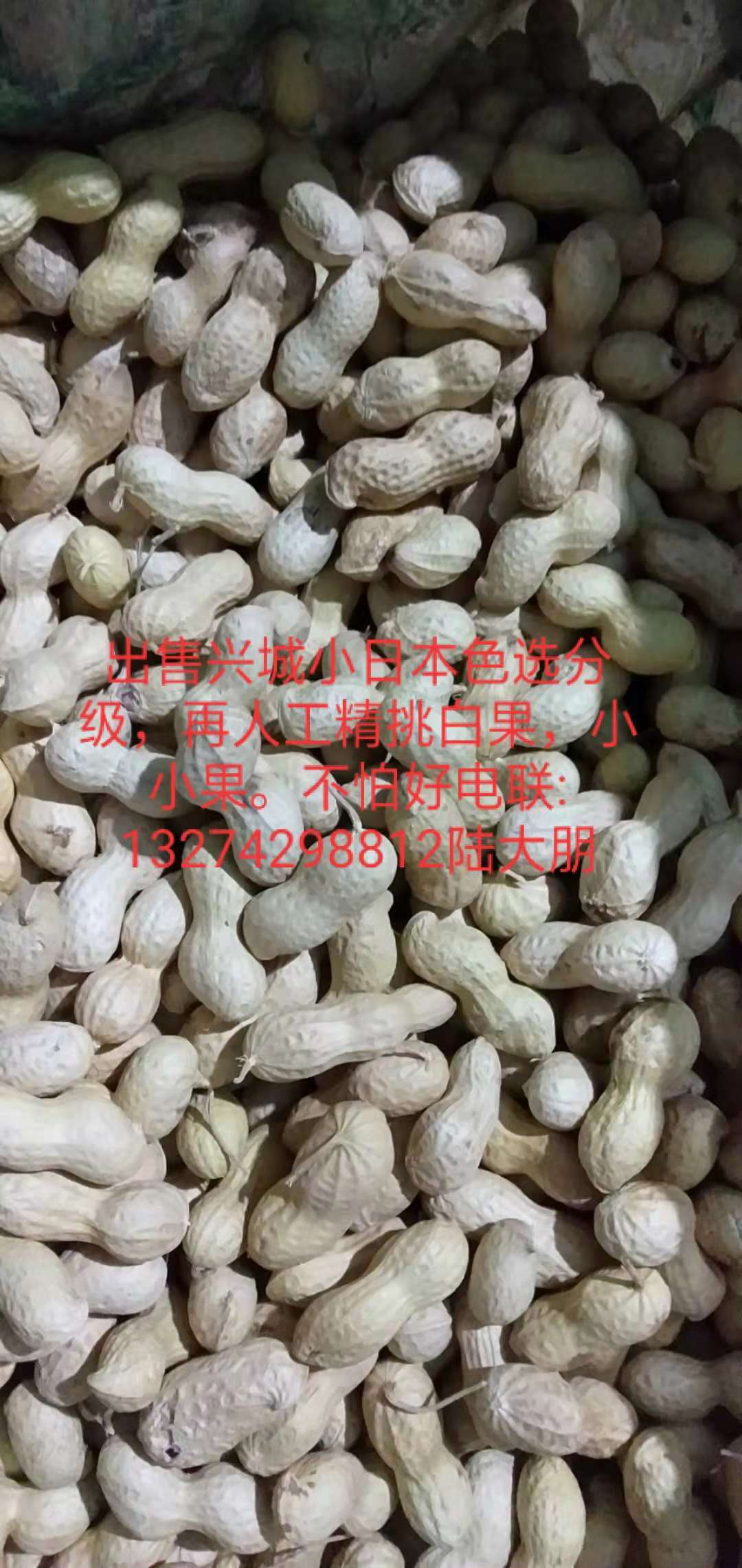 辽宁兴城红崖子大朋花生果加工厂,常年出售兴城小日本色选分级,再人工精挑白果,小小果。果:干一一成一一白。电话:13274298812
